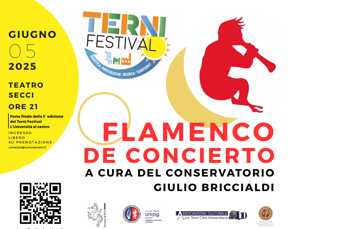 - Giovedì 5 giugno - ore 21 - Teatro Sergio Secci Terni - Premiazione scuola vincitrice e Flamenco de Concierto a cura del Conservatorio Briccialdi (ingresso libero su prenotazione: universita@comune.terni.it)