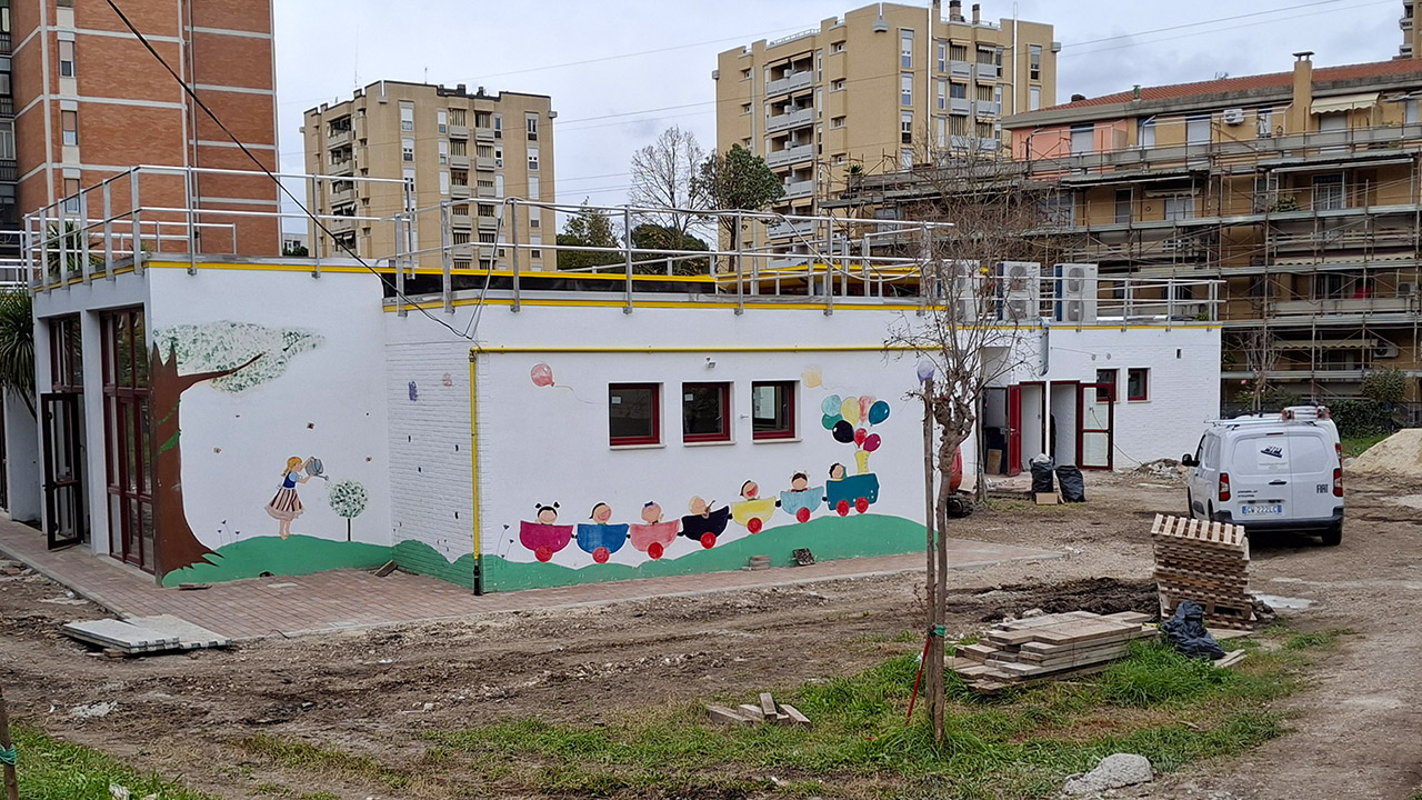 L'intervento finanziato nell'ambito del PNRR con 795.510 euro (Missione 4 Componente 1 Linea d’intervento 1.1), prevede lavori per la riqualificazione funzionale e la messa in sicurezza dell'edificio dell'asilo nido Girotondo in via Rossini 147, all'interno del piano per gli asili nido, le scuole dell'infanzia e i servizi di educazione e cura per la prima infanzia.