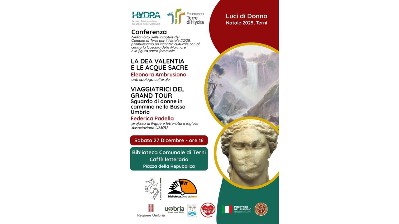 Nell’ambito delle iniziative del Comune di Terni per il Natale 2025 Luci di donna, un incontro dedicato alla Cascata delle Marmore e la figura sacra femminile.