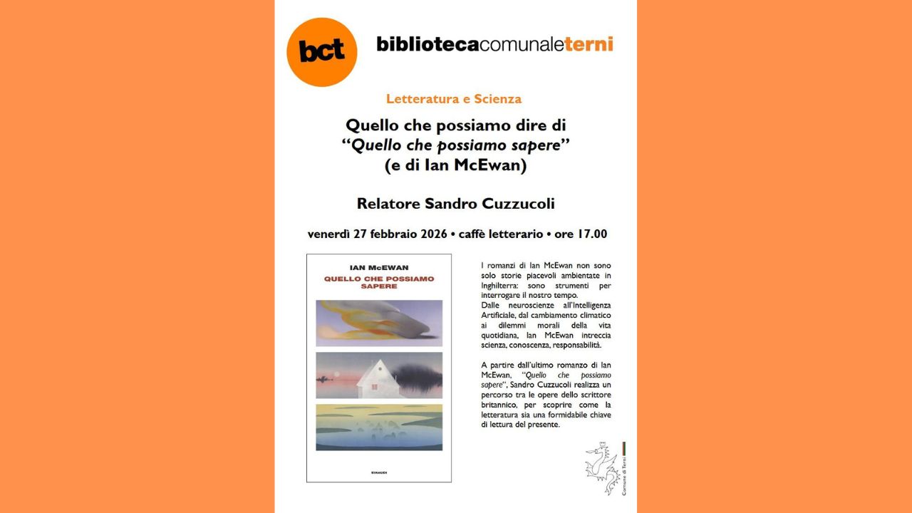 Per la rassegna Letteratura e Scienza, conferenza del prof. Sandro Cuzzucoli Quello che possiamo dire di “Quello che possiamo sapere” (e di Ian McEwan)