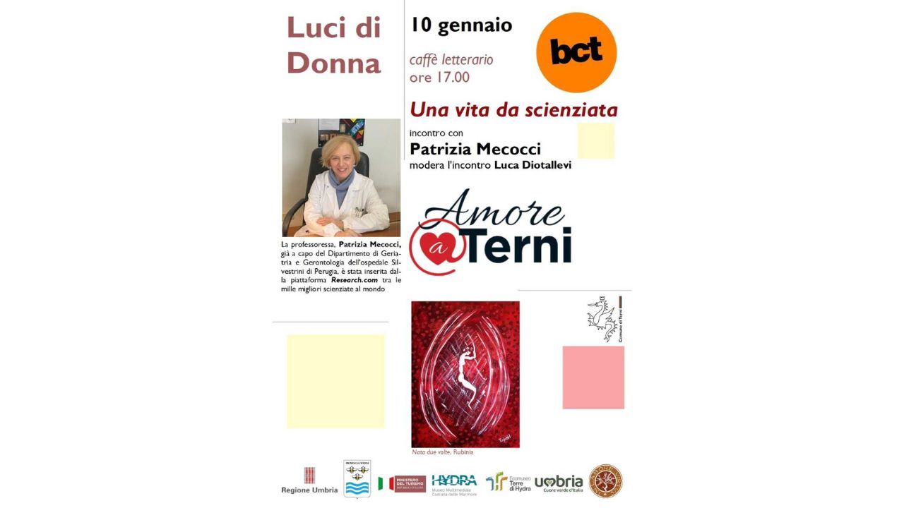 Una vita da scienziata. Incontro con Patrizia Mecocci, modera l'incontro Luca Diotallevi. La professoressa, Patrizia Mecocci, già a capo del Dipartimento di Geriatria e Gerontologia dell'ospedale Silvestrini di Perugia, è stata inserita dalla piattaforma Research.com tra le mille migliori scienziate al mondo