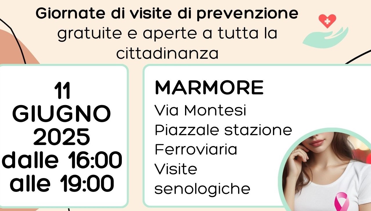 Nell’ambito del Patto di Collaborazione con LILT ODV Terni prosegue l’iniziativa “Insieme per la Prevenzione”, che prevede in data 11 giugno 2025 dalle ore 16 alle ore 19 la effettuazione di visite gratuite senologiche per la cittadinanza presso Marmore in Via Montesi Piazzale della Stazione Ferroviaria.