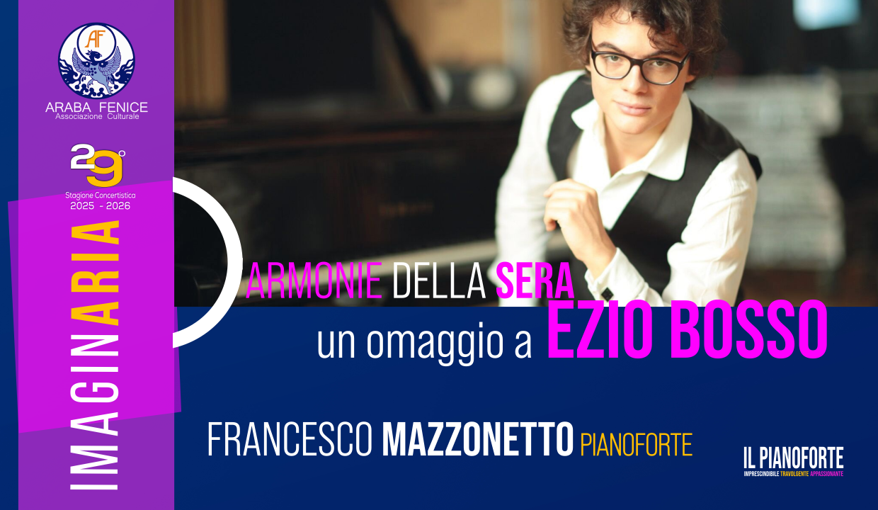 Ezio Bosso compositore, contrabbassista, direttore d'orchestra e pianista. Il suo eclettismo artistico e la sua straordinaria energia vitale, lo hanno reso una figura molto amata in Italia e non solo. Fu un artista poliedrico dirigendo alcune delle più prestigiose orchestre, ed esibendosi nei più importanti teatri del mondo. La sua forza, nonostante la tremenda malattia, e la passione nei confronti della musica lo ha reso un grande divulgatore capace di appassionare e commuovere il pubblico. Il tributo è affidato a Francesco Mazzonetto, giovane e talentuoso pianista, vincitore di numerosissimi premi, allievo di Ezio Bosso, con il quale aveva un rapporto speciale, da lui stimatissimo e generosamente sostenuto nella sua carriera. Un concerto dal forte valore artistico ed emotivo che si preannuncia imperdibile!
