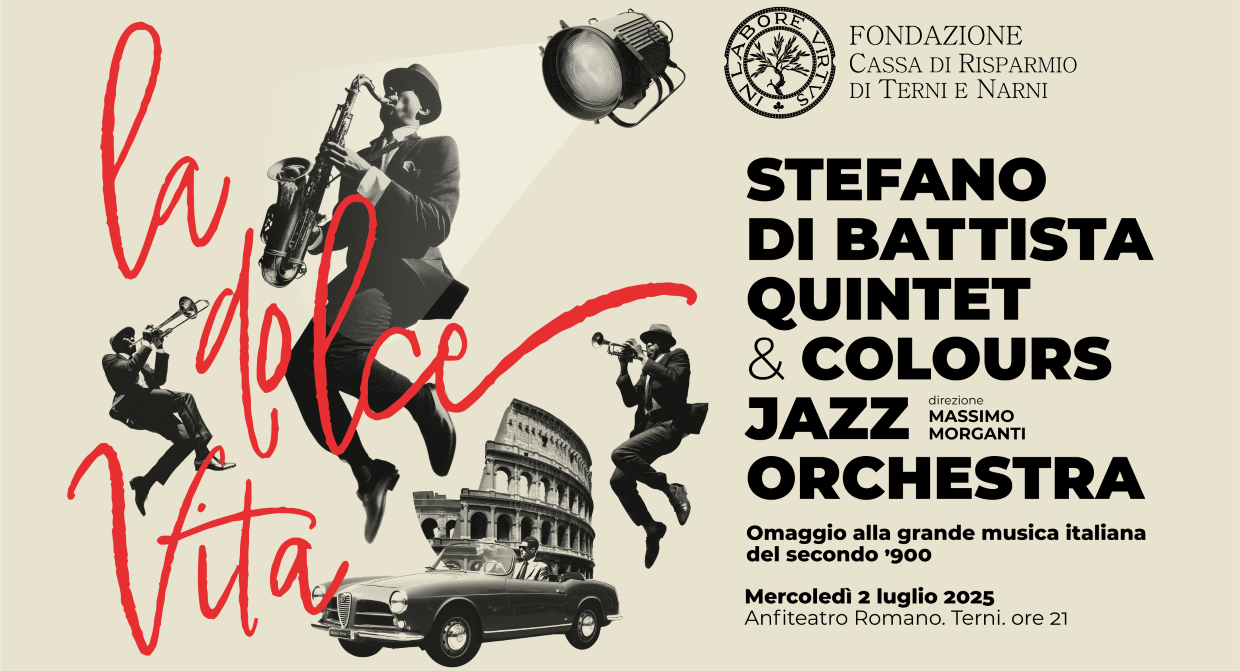 Immaginate le atmosfere oniriche dei film di Fellini che si fondono con il pathos di Caruso e la gioia incontenibile di Nel blu dipinto di blu (Volare). La Dolce Vita è proprio questo: un vibrante omaggio alla musica italiana che prende forma dall’incontro esplosivo tra il talento internazionale del sassofonista Stefano Di Battista e la travolgente energia della Colours Jazz Orchestra, diretta con maestria dal M° Massimo Morganti. Questa inedita formazione arricchisce gli arrangiamenti raffinati e originali del sassofonista romano con il dinamismo, il fraseggio brillante e la potenza sonora di una big band jazz. Così, ogni brano si trasforma in un racconto sonoro che dipinge affreschi di un’epoca indimenticabile e tra le note possiamo scorgere i vicoli di Trastevere al tramonto, il profumo dei limoni che si mescola alla brezza marina e la vibrante energia dei set cinematografici che hanno scolpito la nostra memoria collettiva.