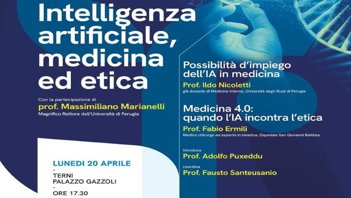 Lunedì 20 aprile – ore 17.30, sala Blu auditorium di Palazzo Gazzoli, Terni, via del Teatro Romano Intelligenza artificiale, medicina ed etica