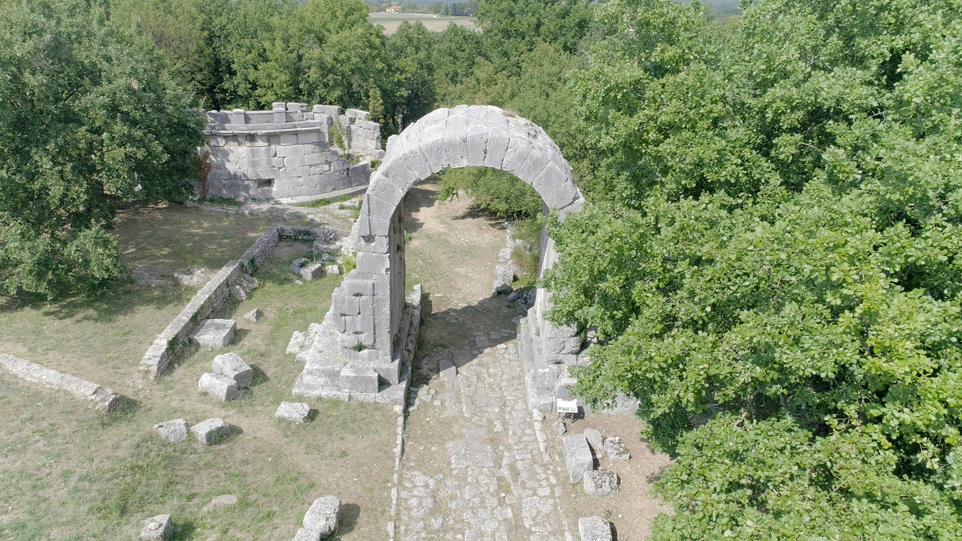 Il tratto urbano della strada formava il cardo maximus, lastricato con basoli di pietra calcarea e munito di marciapiedi e di canalizzazioni per lo scolo delle acque. Monumenti funerari sono visibili a nord dell'arco di San Damiano, mentre nella zona opposta è un impianto termale, tuttora in corso di scavo.