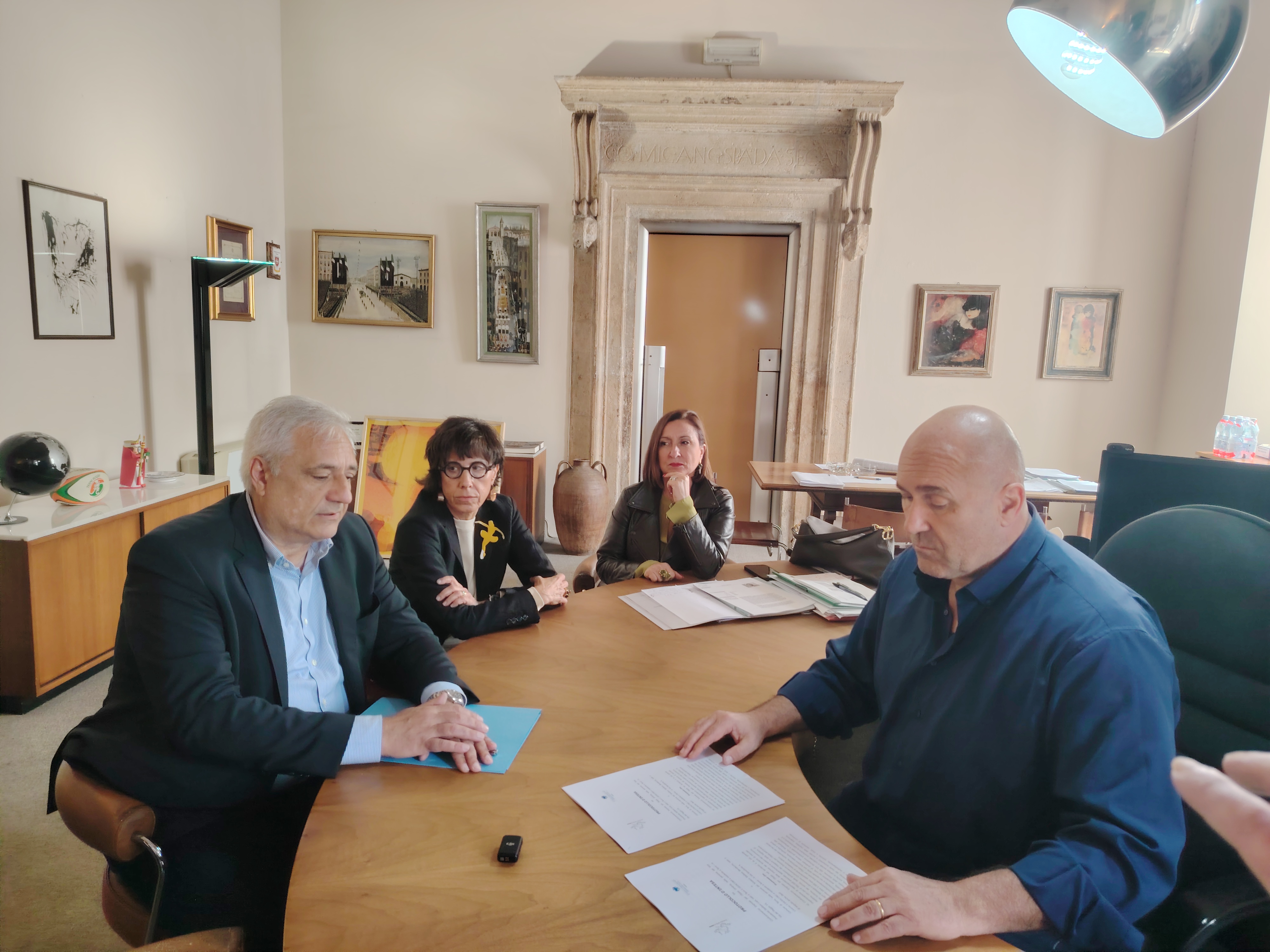 (ufficio stampa) - E' stato firmato questa mattina, nello studio del sindaco, il Protocollo d’Intesa per la rigenerazione Urbana, che ha come cornice l’accordo nazionale Confcommercio- Anci rinnovato nel 2023. Presenti il primo cittadino Stefano Bandecchi, il presidente di Confcommercio Stefano Lupi, la direttrice dell'associazione di categoria Maria Bruna Fabbri, l'assessore al Commercio Stefania Renzi.