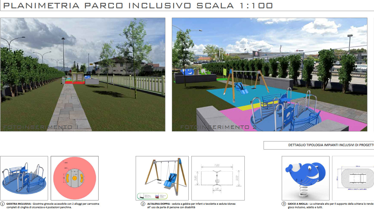 Il Comune aderisce quindi alla proposta del privato per la riqualificazione dell’area – tutta di proprietà della ditta proponente – e ne riconosce l’interesse pubblico «quale norma incentivante il risparmio di uso del suolo e la realizzazione del parco inclusivo». Il Parco sarà adatto anche a piccoli con disabilità.