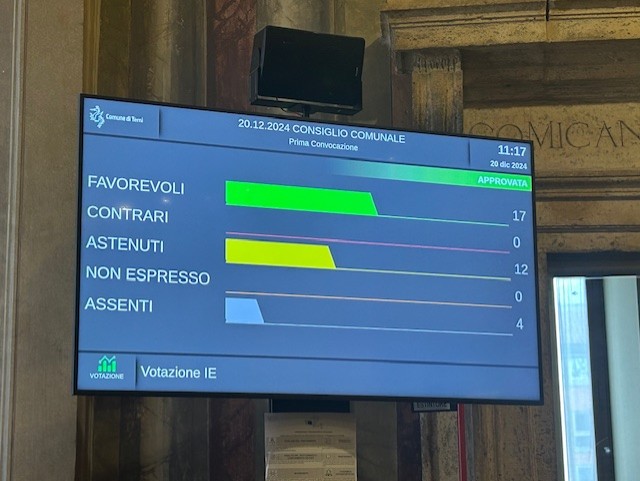 (ufficio stampa) – Il Consiglio comunale, nella seduta odierna con 17 voti a favore e 12 astenuti, ha approvato la revisione ordinaria delle partecipazioni societarie, dirette e indirette, del Comune di Terni possedute al 31 dicembre 2023.