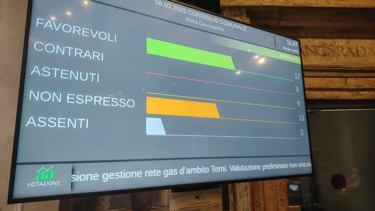 (ufficio stampa) - Il Consiglio comunale nella seduta di questa mattina, con 17 voti a favore e 13 non espressi, ha proceduto ad una valutazione preliminare e manifestato la volontà non vincolante di alienare la rete del gas di proprietà del Comune appartenente all’Atem Terni, nell’ambito della procedura di gara per la concessione della gestione dell’infrastruttura.