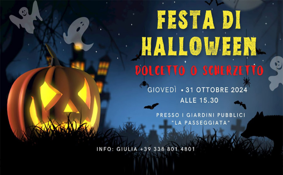 Giovedì 31 ottobre, alle ore 15.30, ai Giardini pubblici La Passeggiata, si svolgerà la Festa di Halloween, iniziativa co-progettata nell’ambito del Patto di collaborazione stipulato tra il Comune e l’Associazione A.Ge (Associazione Italiana Genitori).